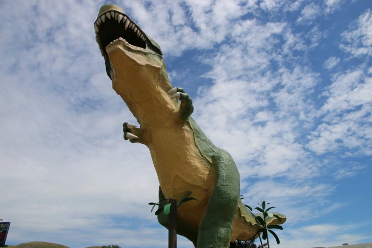 Au centre d’information touristique, c’est un dinosaure géant qui accueille les visiteurs.