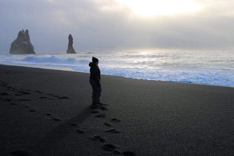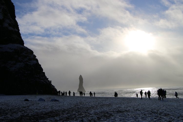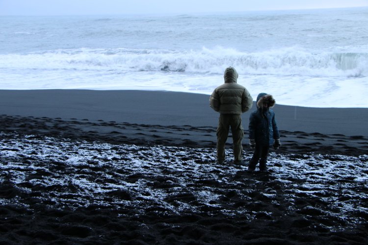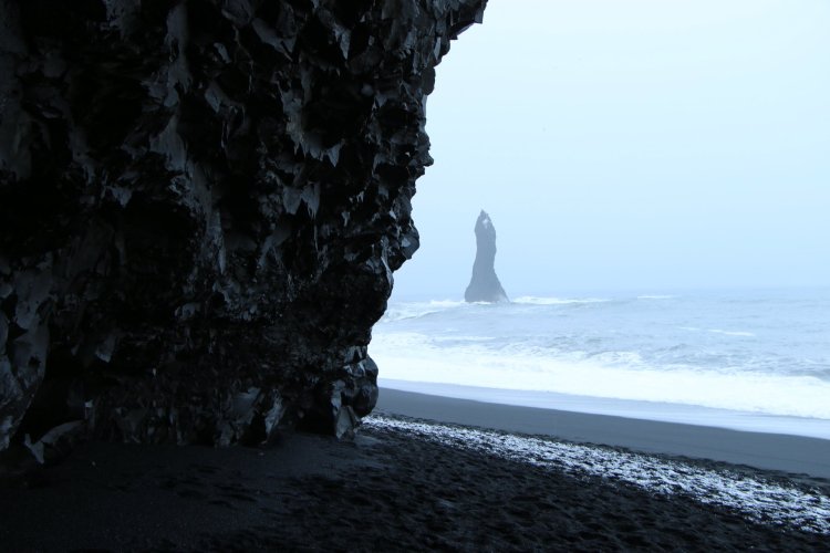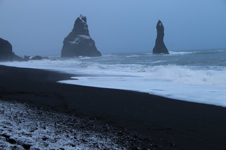 Passer Vik et son col, une route part sur la gauche en direction de l’océan. Cette plage de sable noire très photogénique attire grand nombre de touristes à la recherche de la photo la plus originale. Son originalité vient de ses falaises noires tombant sur la plage. A notre arrivée, il neigeait puis le soleil est rapidement réapparu.