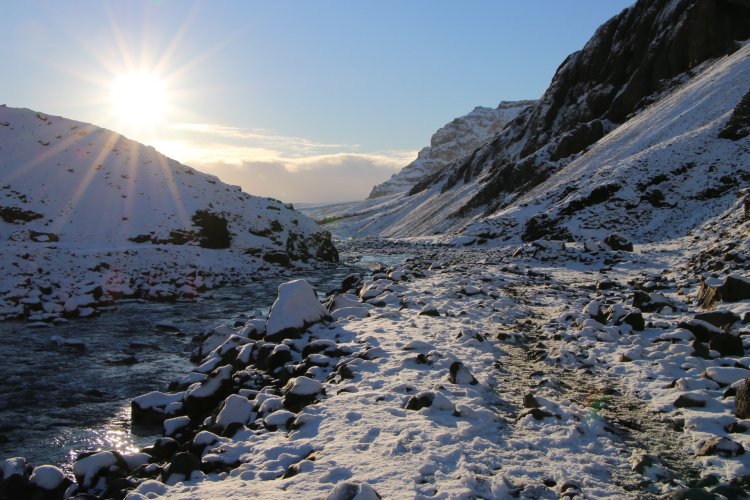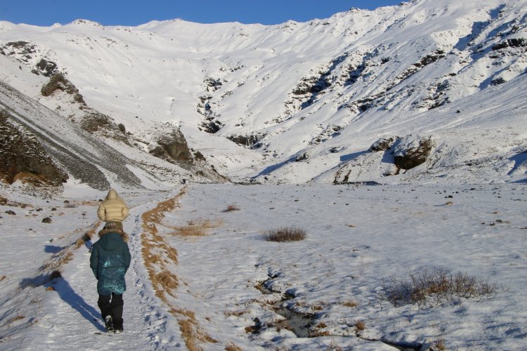 Prendre le chemin qui longe la rivière (absolument pas indiqué) vers la vallée . L’hiver il suffit de suivre les traces de pas dans la neige. Il faudra à un moment traverser la rivière, gelée l’hiver, mais en été, il faudra se mouiller les pieds.