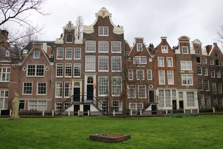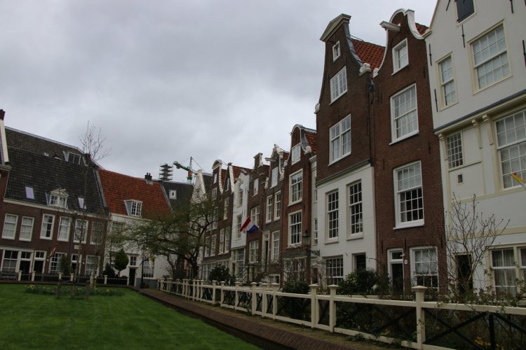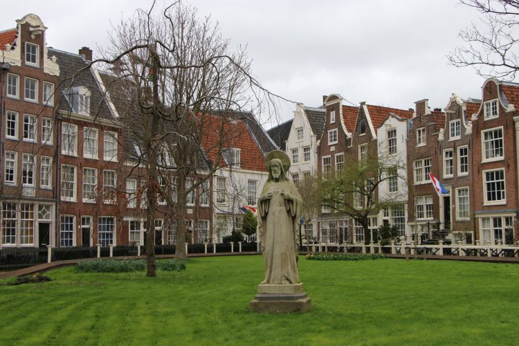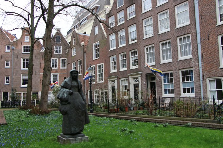 Nous avons commencé la visite à 14h. Depuis l’hôtel, direction la Place du Dam, où la ville a été fondée. Nous prenons les petites rues piétonnes et trouvons le Beguinage, une charmante cour verdoyante, bordée de petite maison et jardin.