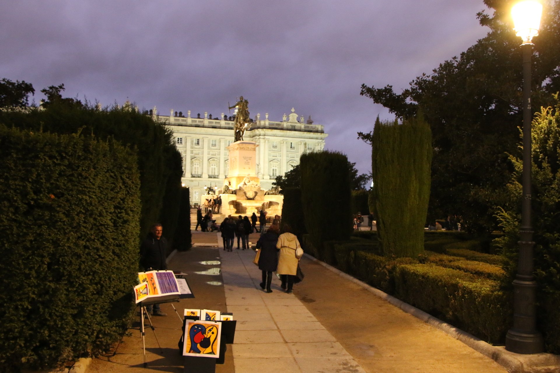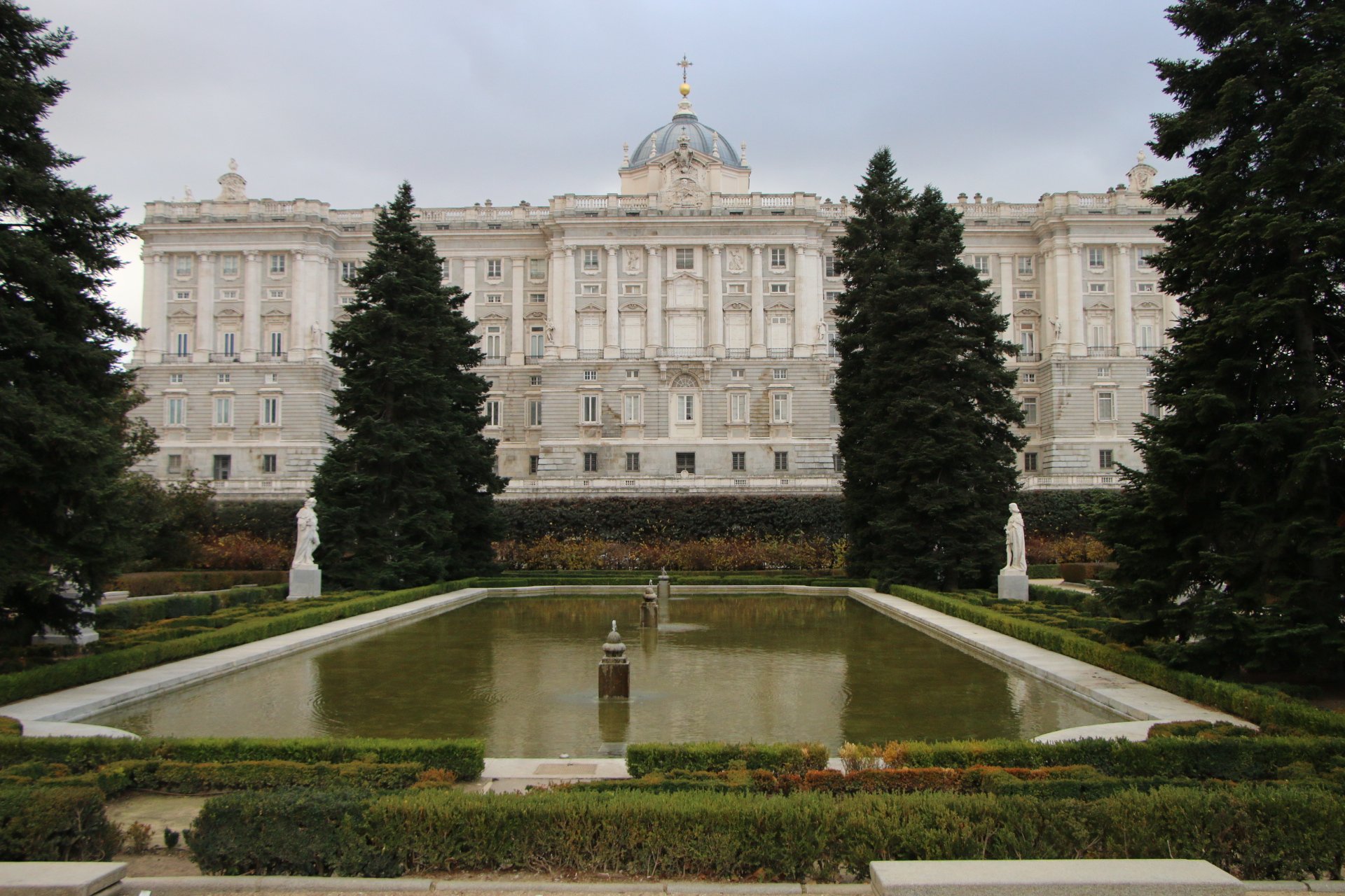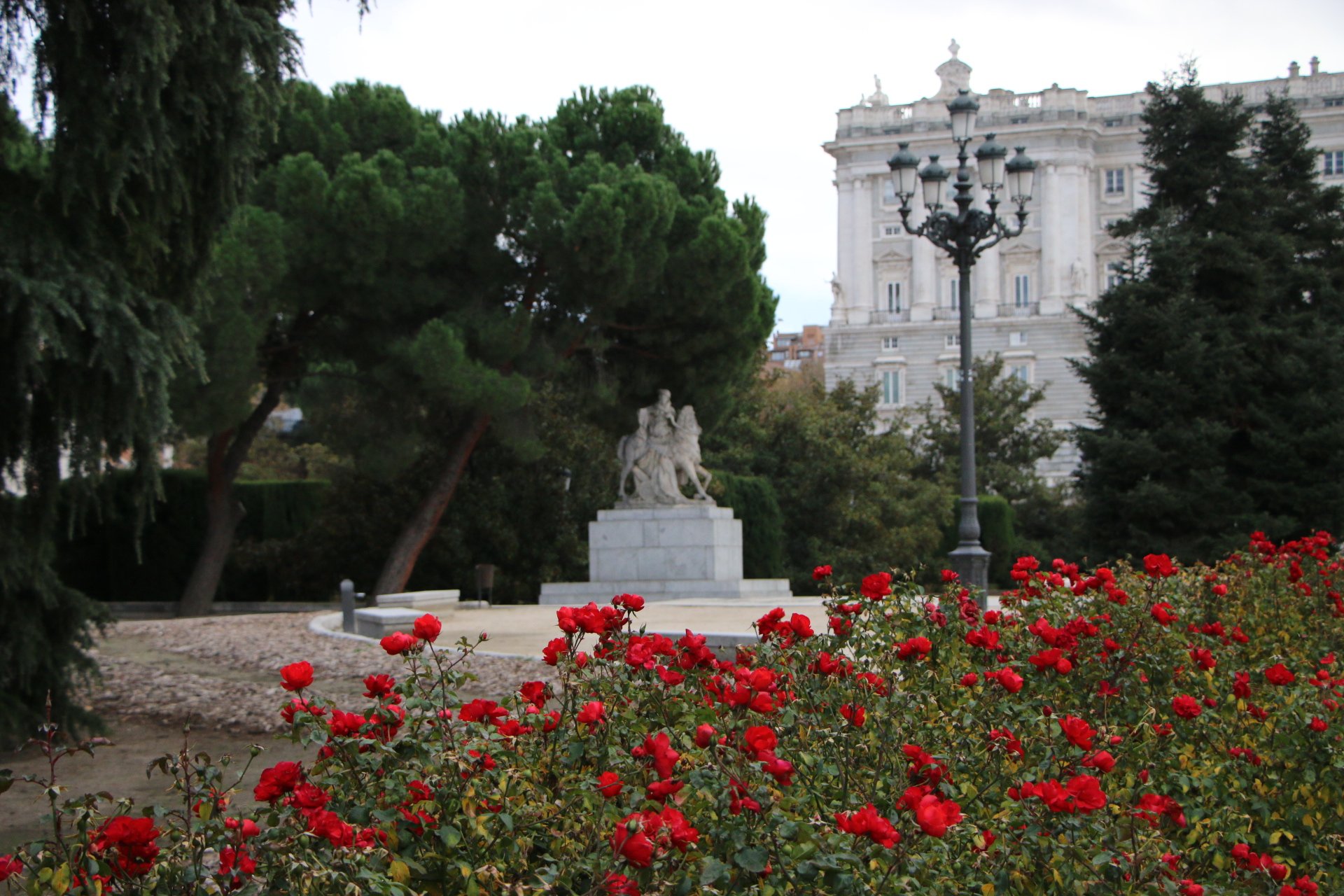 Après un arrêt repas chez Museo de Jamon, nous prenons la direction du Palais Royal. Nous visitons la Cathédrale Nuestra Senora de la Almudena. La visite du palais étant payante nous l’observons de l’extérieur. En le longeons nous arrivons à son superbe jardin.