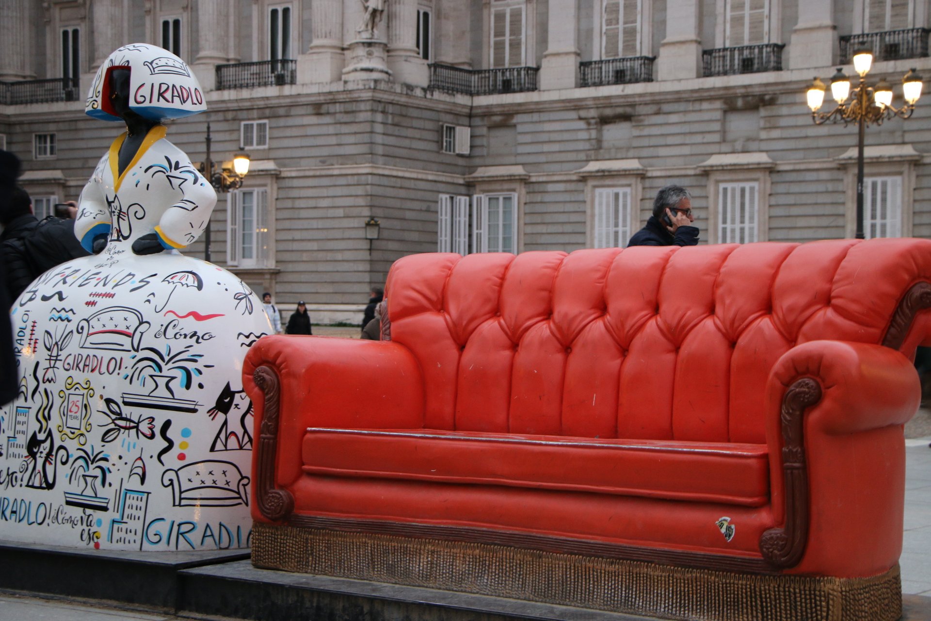 Nous revenons sur nos pas, et retournons devant le Palais, où siège un énorme sapin de Noël, mais surtout où est installé le mythique canapé de la série Friends pour les 25 ans de la série. Malheureusement, il y a tellement de queue que nous n’avons pas la patience d’attendre pour prendre notre photo (pour la petite info, nous avons voulu y revenir très tôt le matin, mais le canapé n’y était pas 😢)