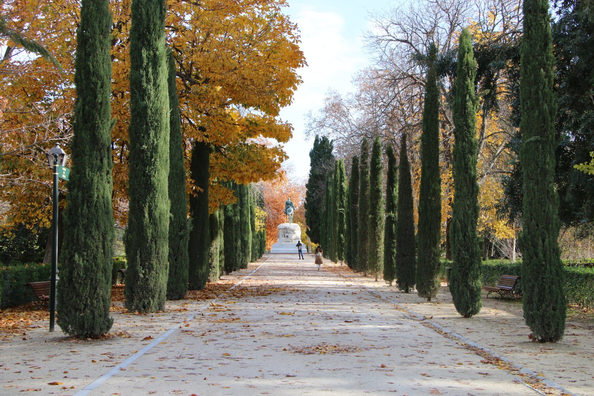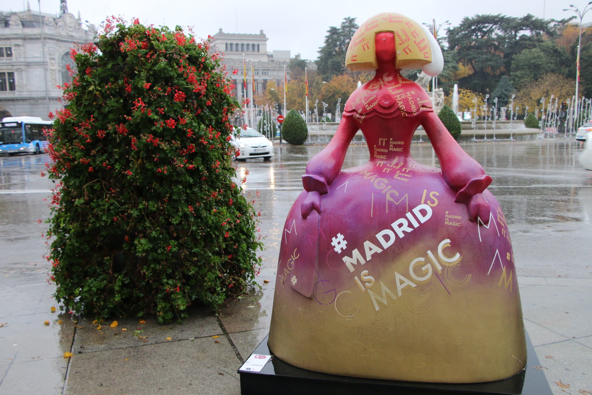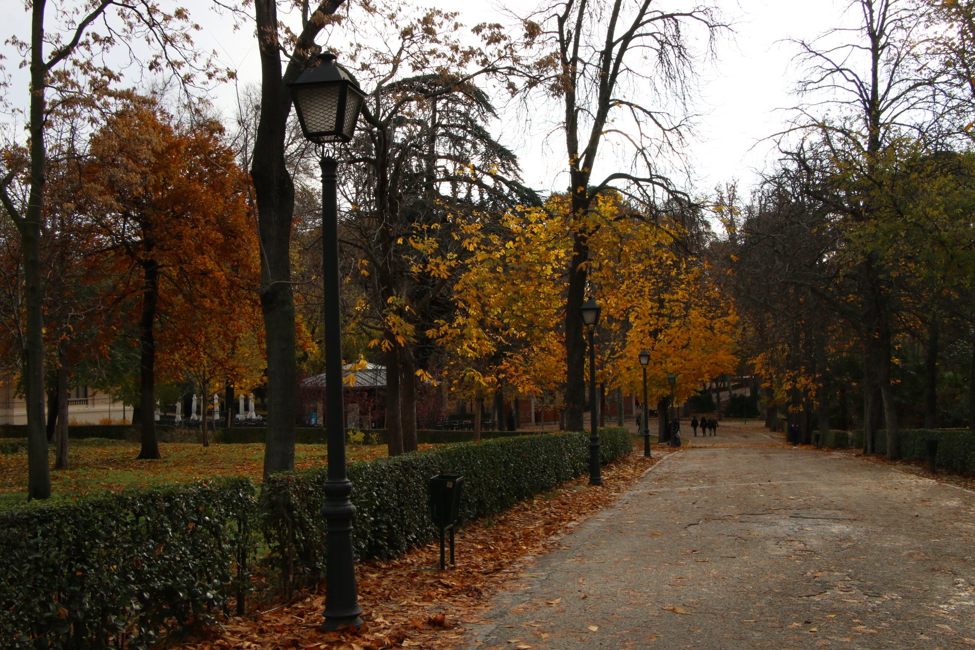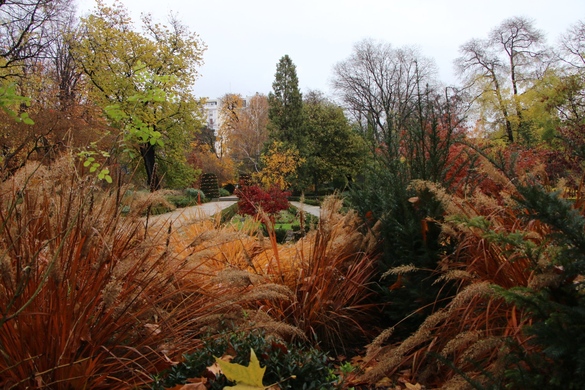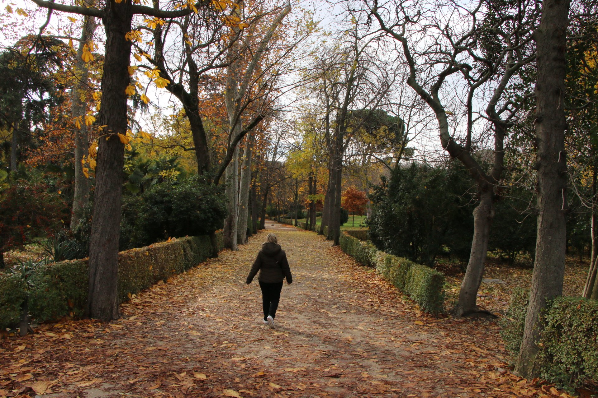 Nous continuons notre ballade en remontant le Passeo del Prado, dont les splendides couleurs d’automne ressortent d’avantage avec la pluie. Nous sommes trempés, mais le décors est tellement sublime que nous essayons de visiter le jardin botanique. Malheureusement, le jardin ferme pour la fin de journée car il n’est plus praticable à cause de la boue.