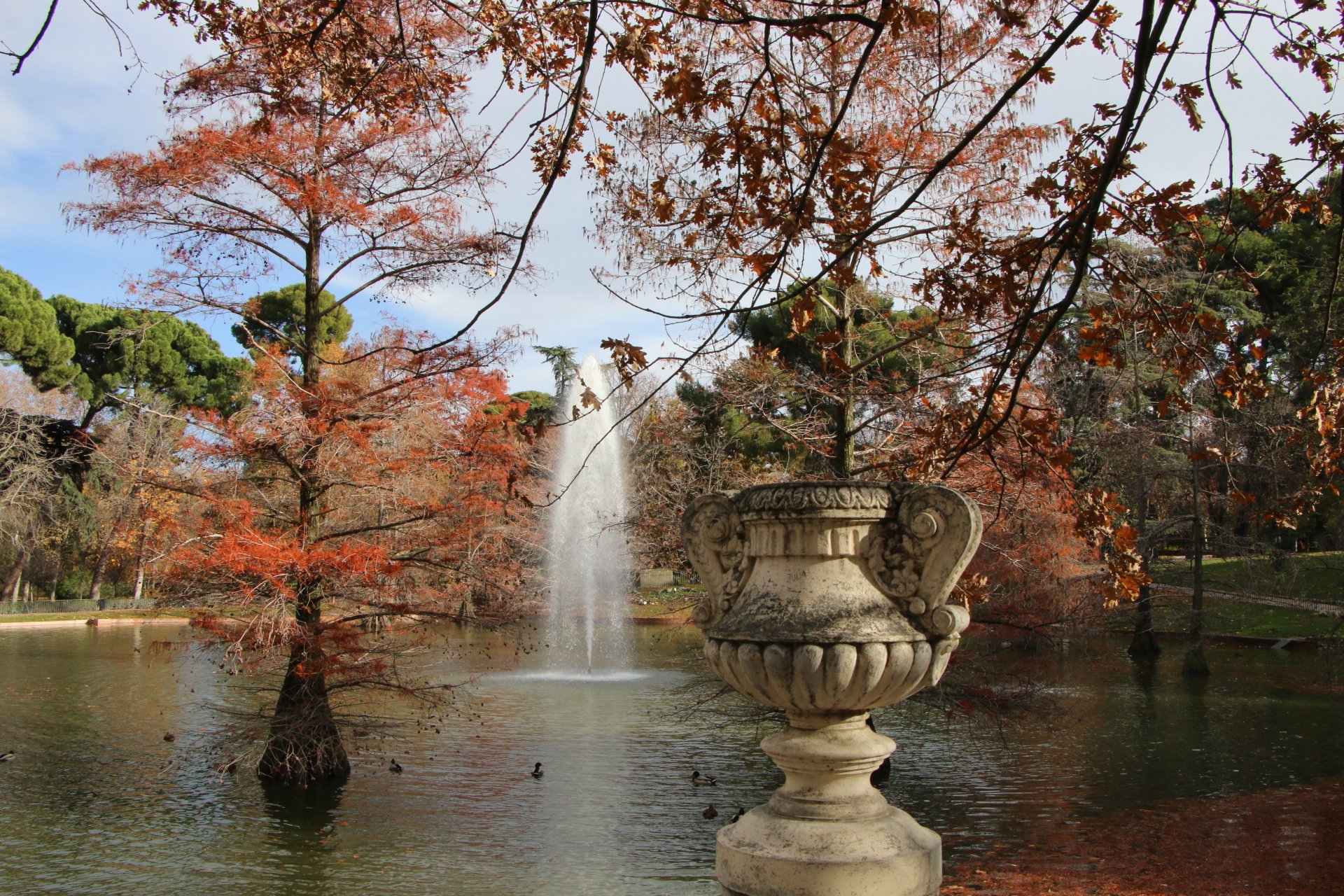 Comme il y a peu d’animation le lundi matin, nous prenons le métro afin de rejoindre le parc El Retiro. Poumon vert de la capitale, en décembre, les belles couleurs d’automne révèlent encore plus tout son charme. Ne pas manquer le palais de Cristal.