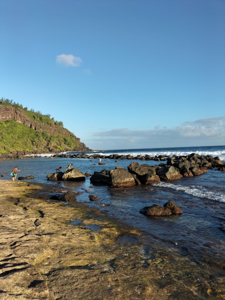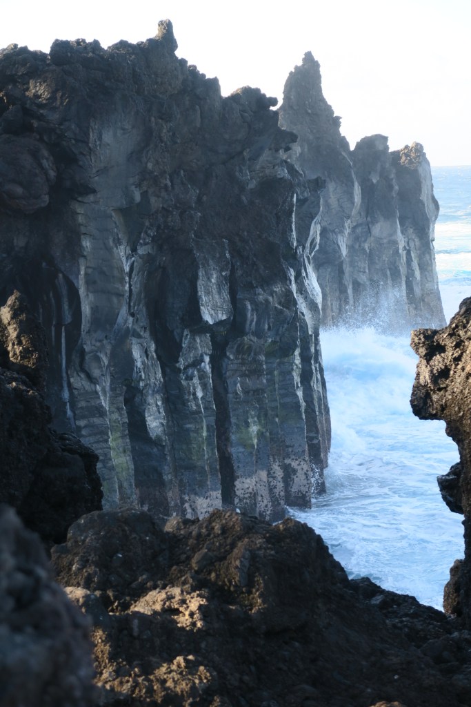 On accède à la plage par une petite marche, juste assez longue pour le ciel devienne bleu. Il faudra quand même un peu crapahuter pour arriver sur les plages puis courir pour éviter les vagues. Le paysage est fabuleux et vraiment unique.