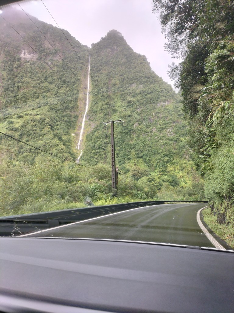 Nous faisons un stop au belvédère de la cascade du voile de mariée, juste après l’îlet Salazie.