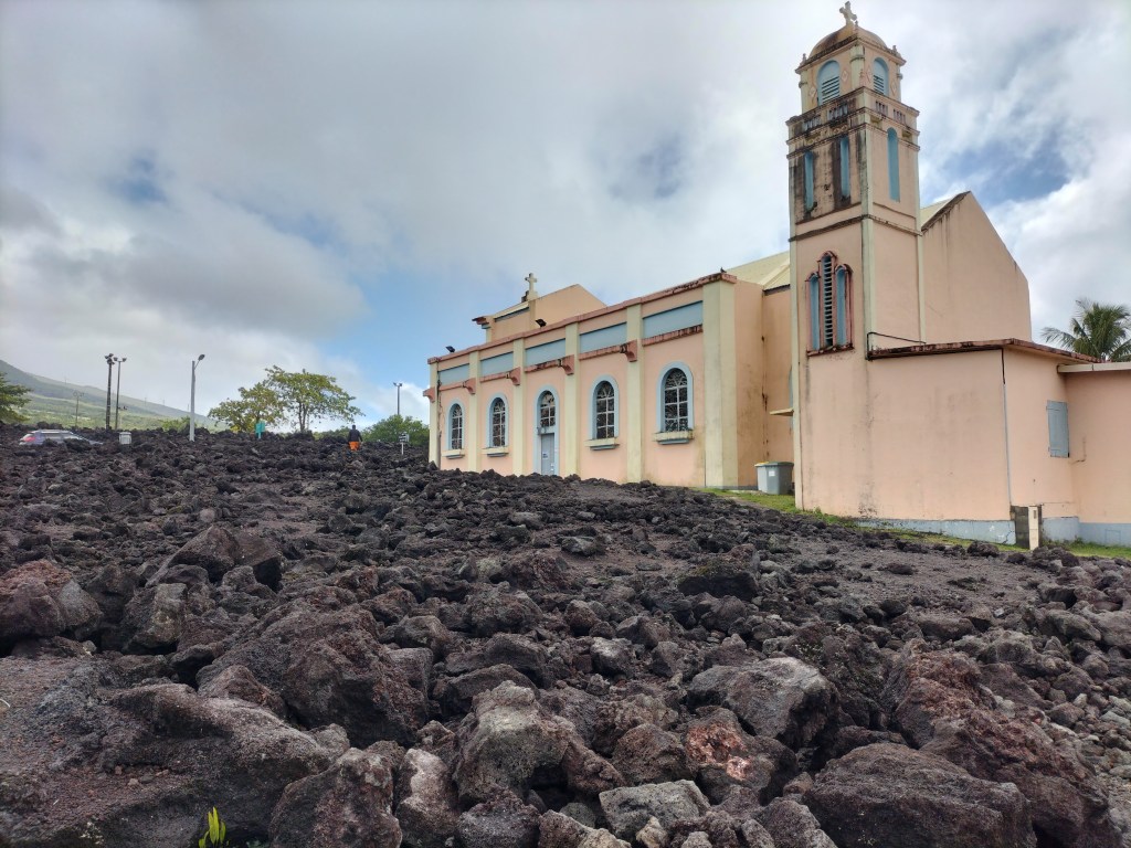 > Sainte Marie des Laves , miraculée de la coulée de lave de 1977