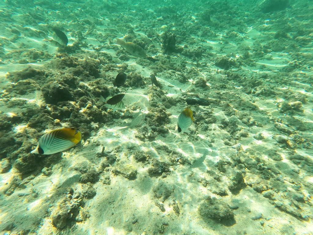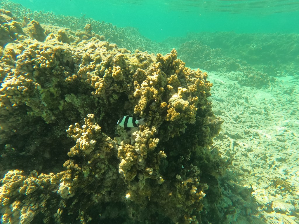 Dès le lendemain, le soleil de retour, nous profitons de la superbe plage de l’Hermitage et de ses jolis fonds. La plage de l’Hermitage est entourée d’une barrière de corail, ce qui permet la baignade en toute sécurité. Masque et tuba de rigueur !