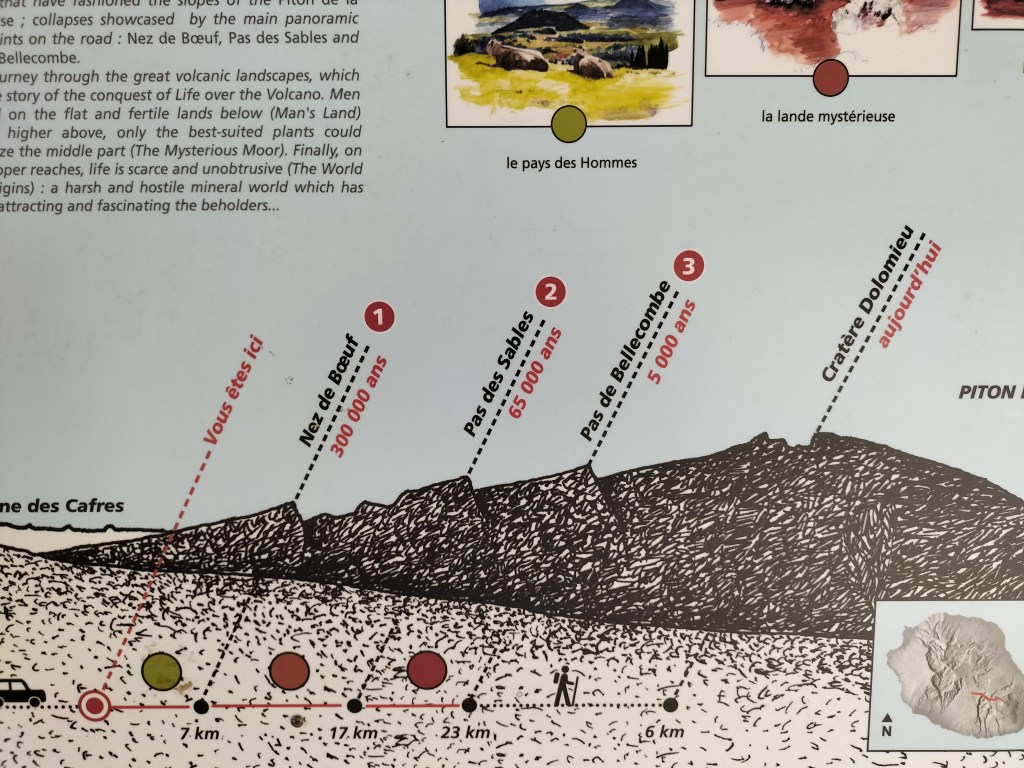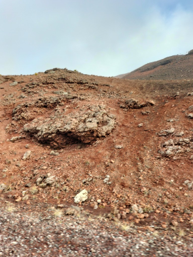 De Bourg Murat, il nous reste une heure et demi avant de rejoindre le Gîte du Volcan de la Fournaise. Sur le chemin nous nous arrêtons aux différents points de vue puis nous arrivons sur la plaine des Caffres. La route n’est alors plus bitumée, sableuse et pleine de trou. Nous avons l’impression d’être sur la lune ou sur Mars!.