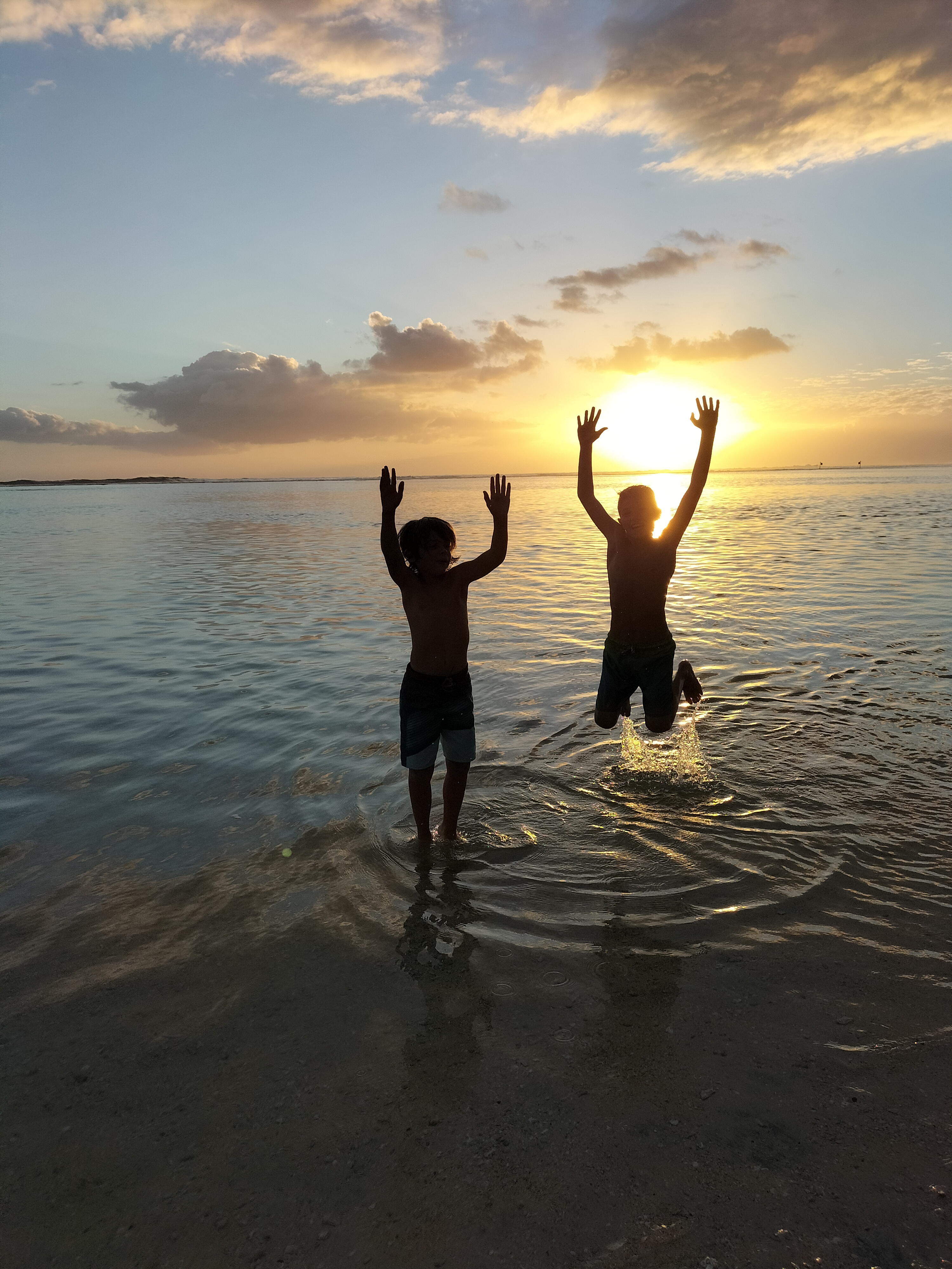 Pour finir cette journée très humide, nous retrouvons à Mahapany les Bains, nos amis Manou, Guillaume et Tiago, qui nous ont rejoint de France.